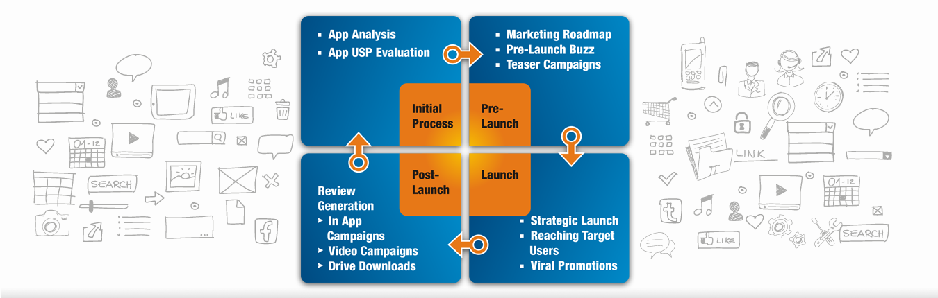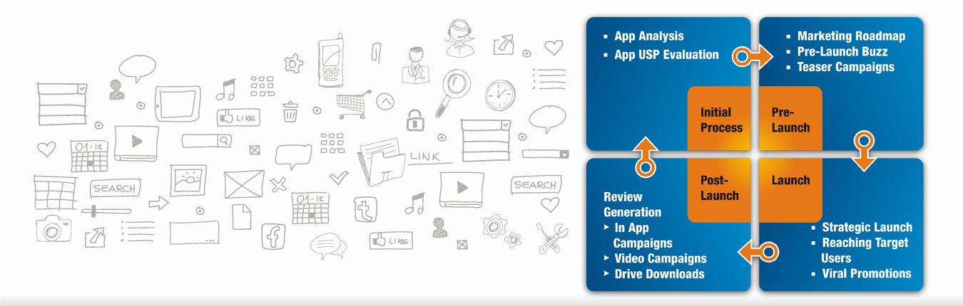 We create a vibrant, happening presence for your app on popular social media channels like Facebook, Twiter, Pinterest and Google+ by creating content rich profiles and pages. This increases your user base and builds loyal users.